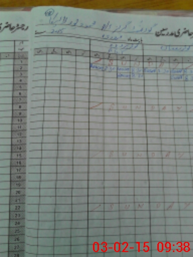 | CNIC | Full Name | Designation | R/C | Absence During Last Calender Month |