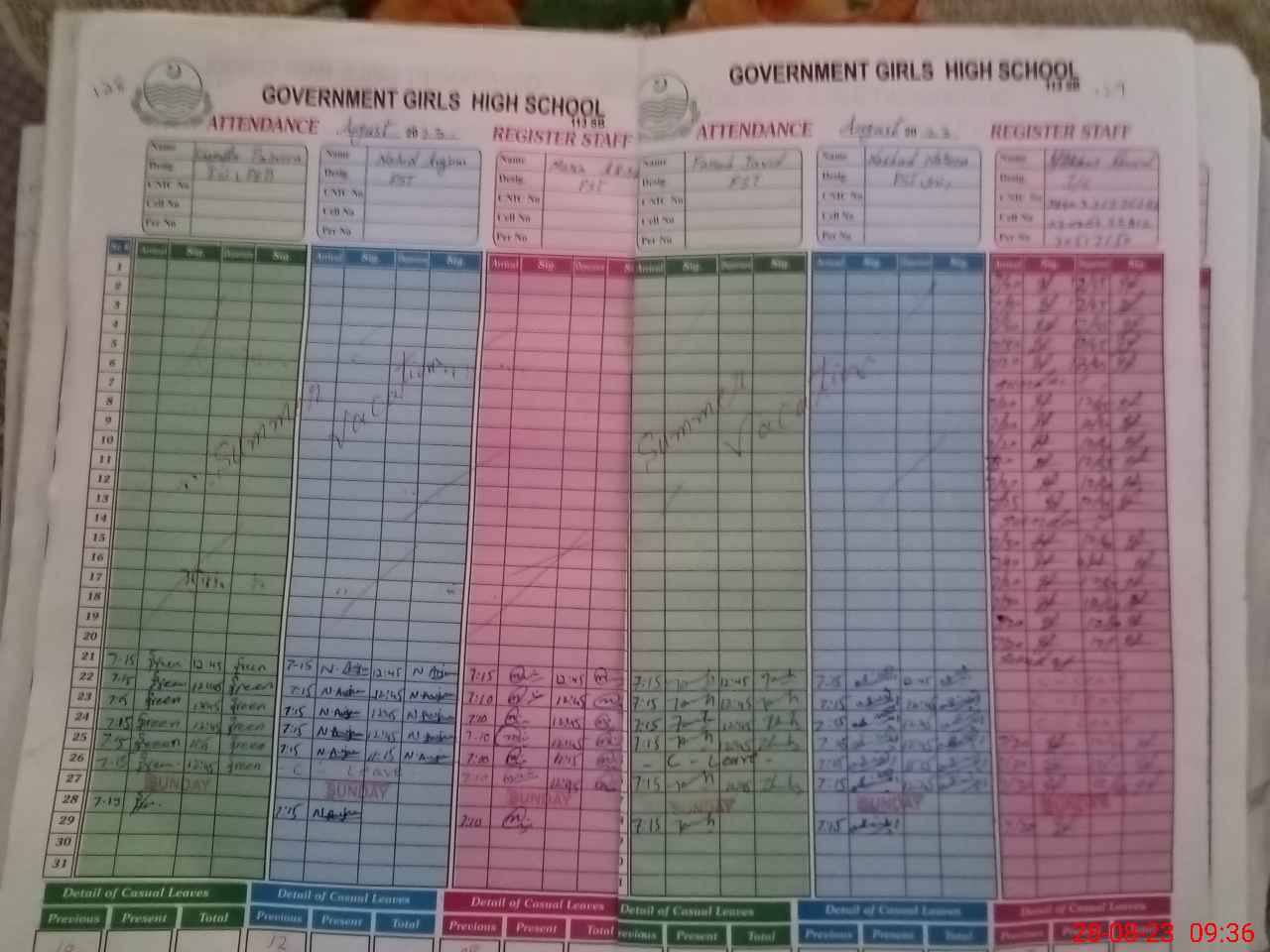 | CNIC | Full Name | Designation | R/C | Absence During Last Calender Month |