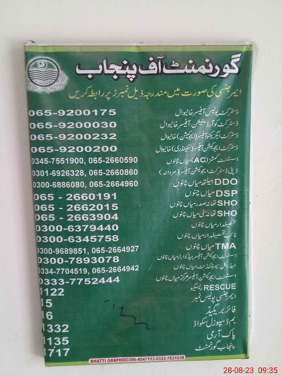 | EMIS Code: 36430079 | Name of School: GGHS 134/16-L, MIAN CHANNU | |||