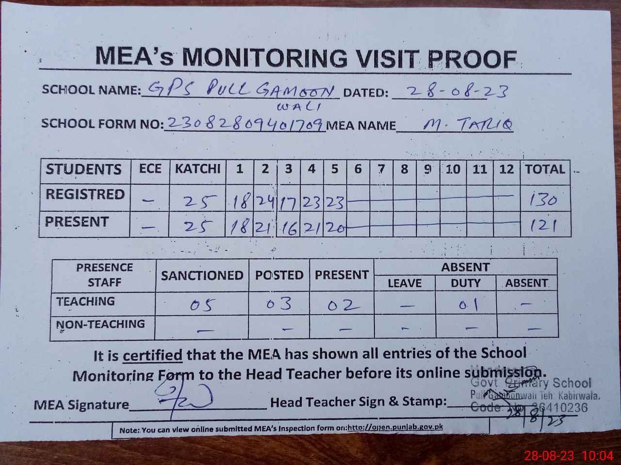 | EMIS Code: 36410236 | Name of School: GPS PUL GAMOON WALI, SARAI SIDHU | |||