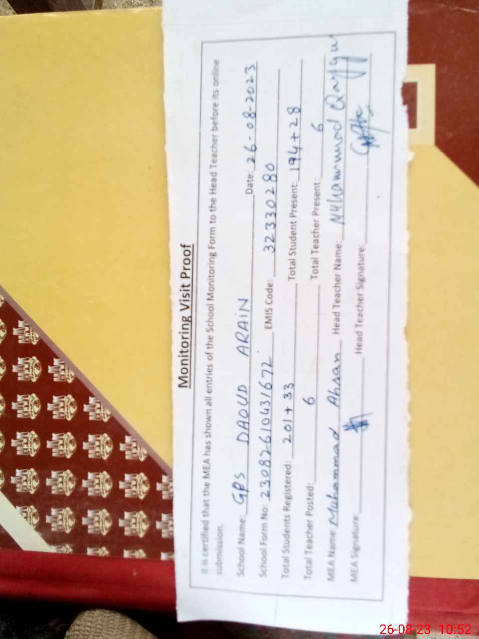 | EMIS Code: 32330280 | Name of School: GPS DAOUD ARAIN | |||