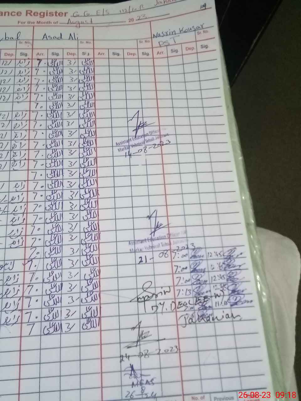 | Monitoring Date: 26-08-2023 | Start Time: 26-08-2023 08:35 AM | End Time: 26-08-2023 09:57 AM | Name of MEA: Ab**** Ja**** (S**** 20**** | |