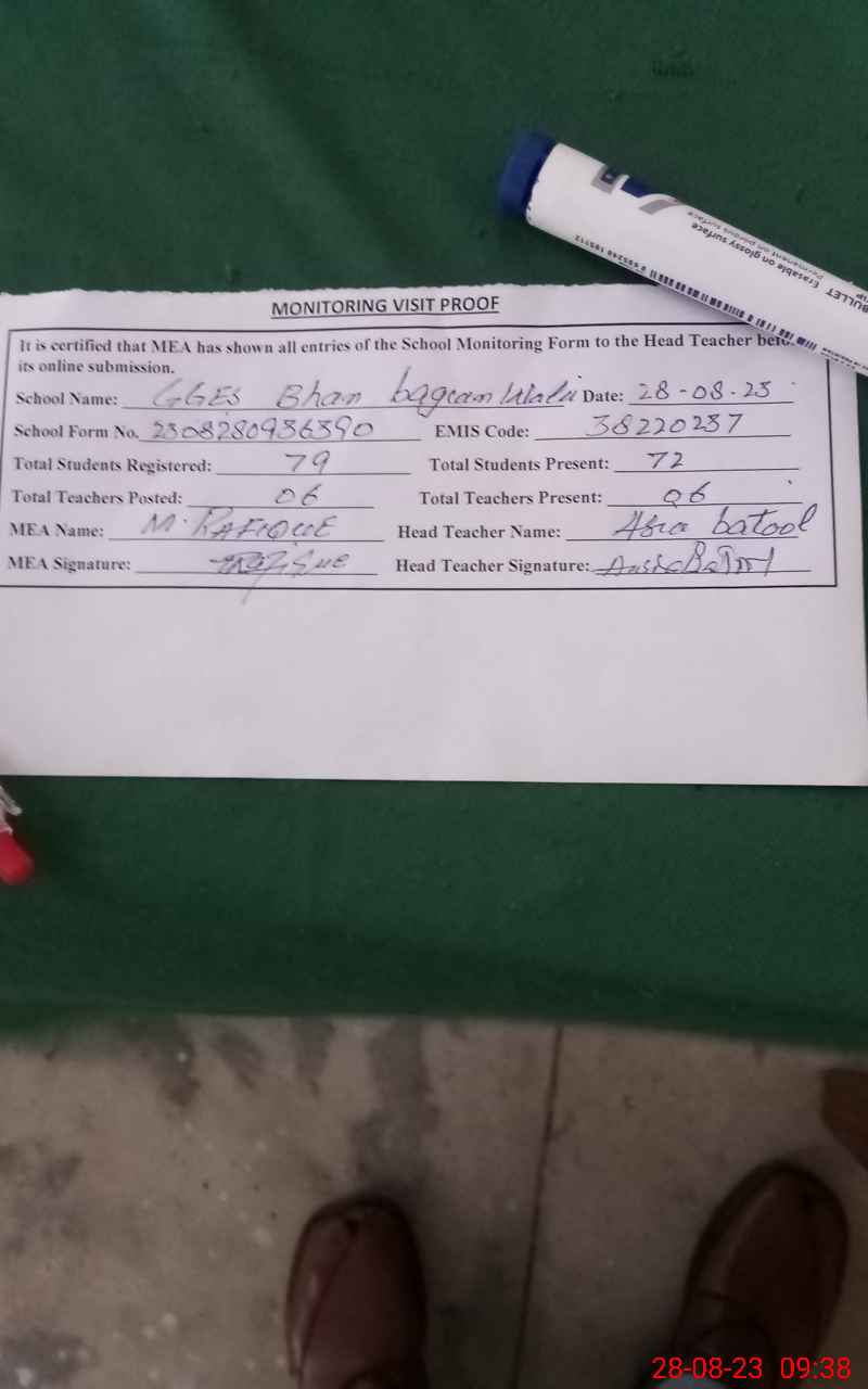 | EMIS Code: 38220237 | Name of School: GGES BHAN BAGIAN WALA | |||
