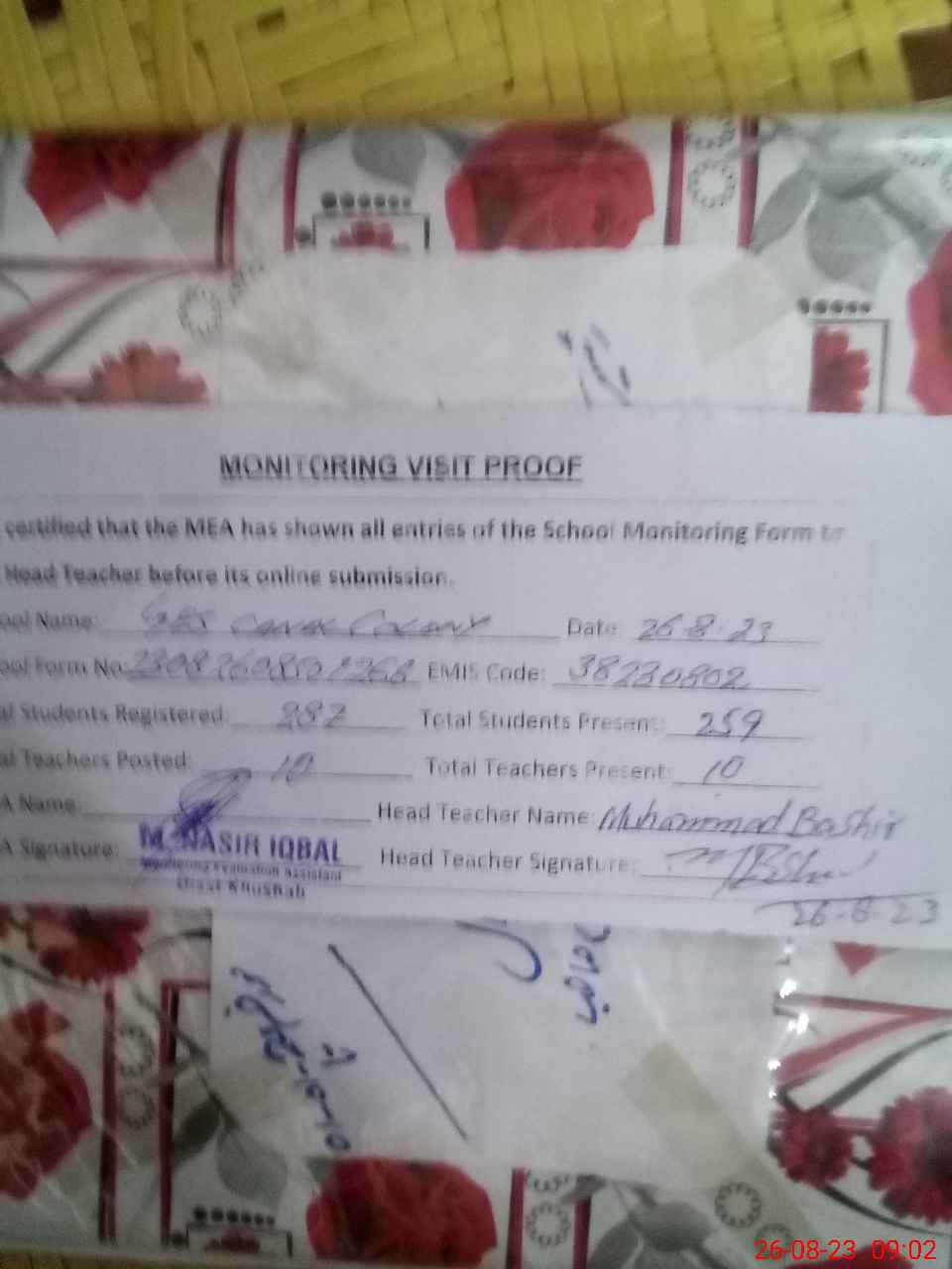 | Certified that this School was Inspected by the Undersigned MEA/DMO Today and the Information Stated Above is as Per Record. | |||||