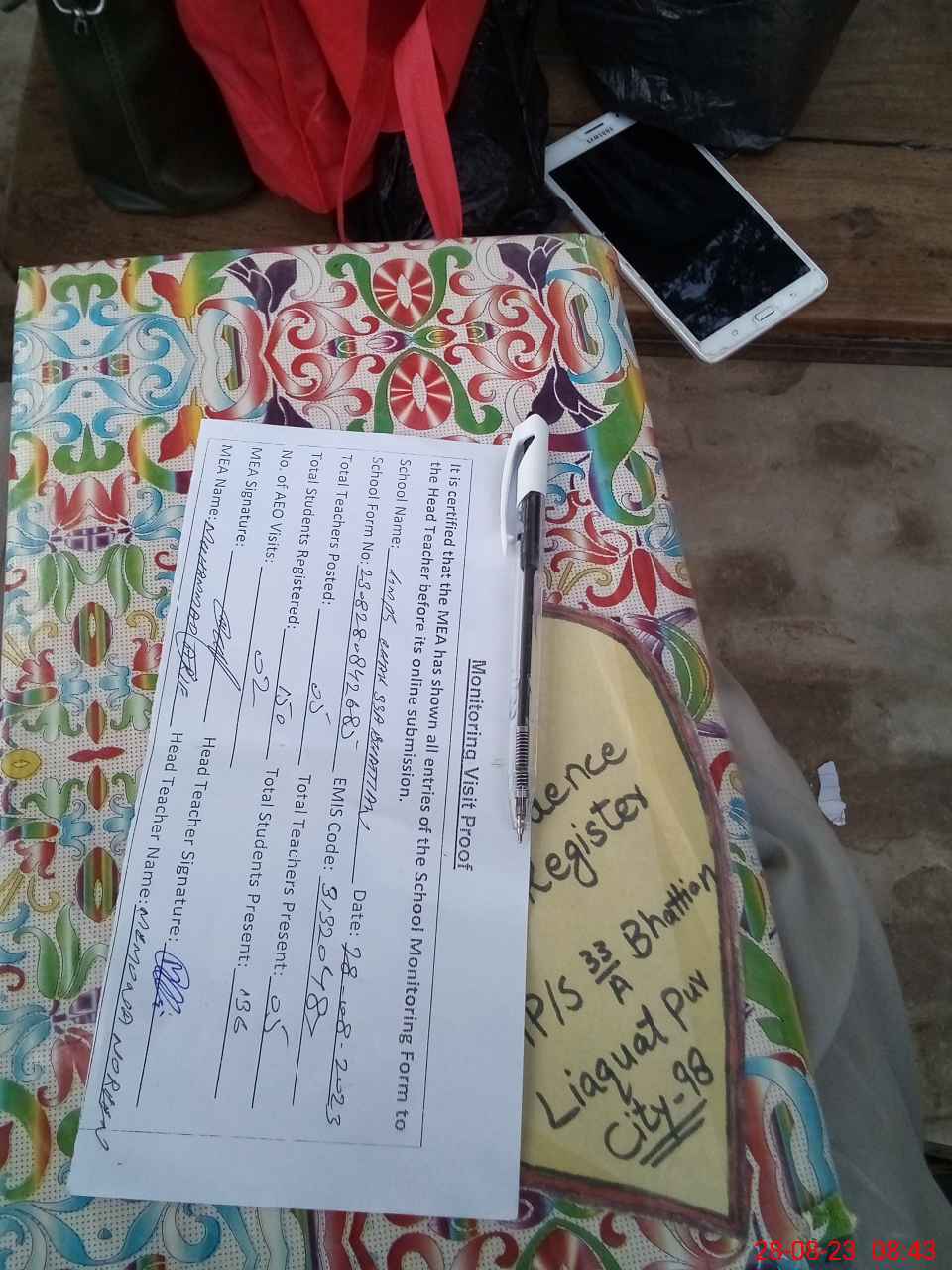 | Attendance Register | Head Teacher | MEA with School | Visit Proof |