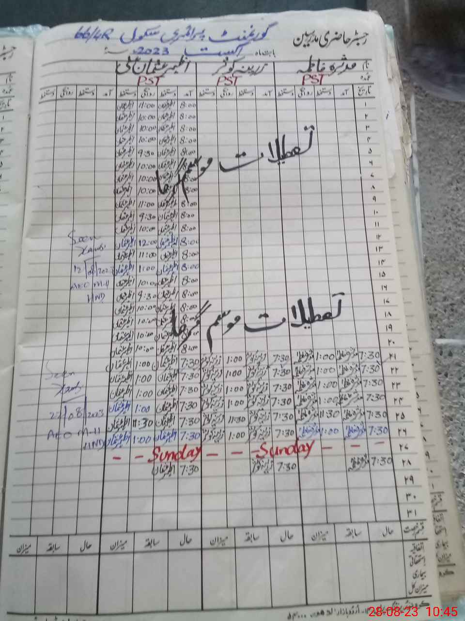 | Name: Az**** Us**** Al**** Designation: (School Headmaster's/Headmistress's) PST Phone/Cell Number: 03**** |
