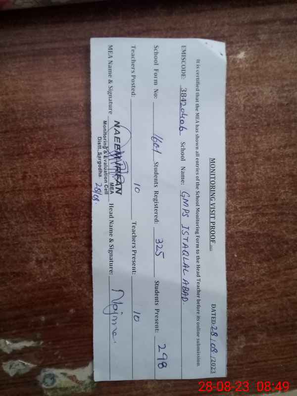 | EMIS Code: 38420406 | Name of School: GMPS ISTAQLAL ABAD | |||