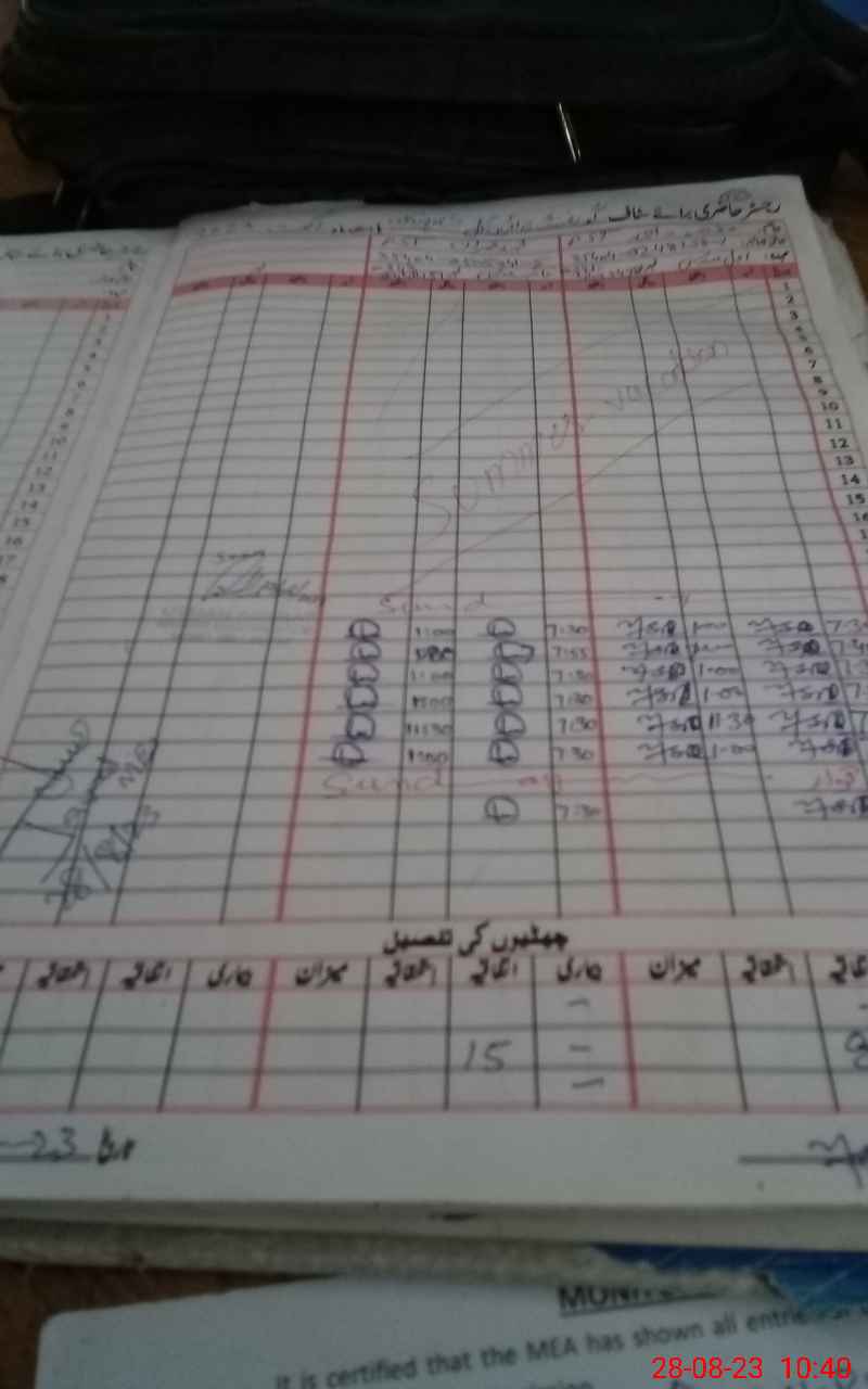 | CNIC | Full Name | Designation | R/C | Absence During Last Calender Month |