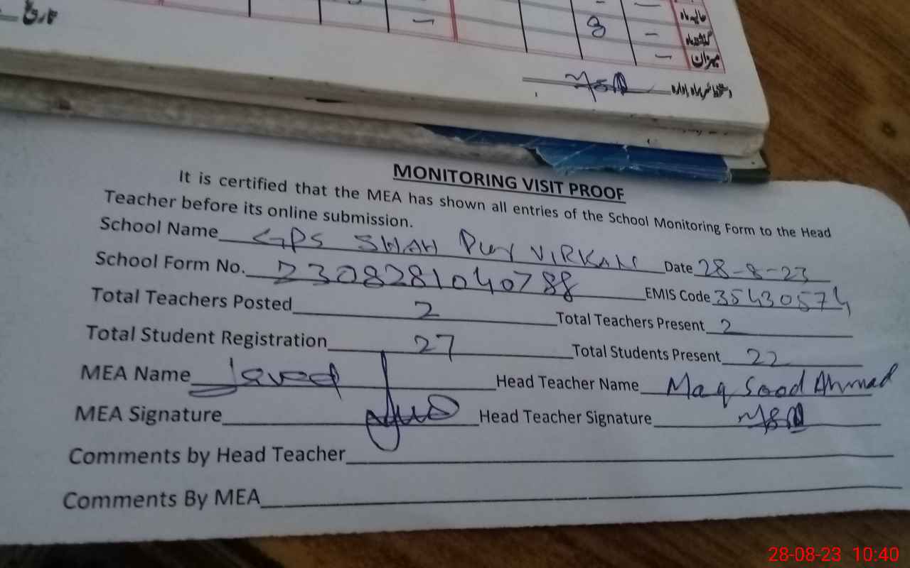 | EMIS Code: 35430574 | Name of School: GPS SHAH PUR VIRKAN | |||