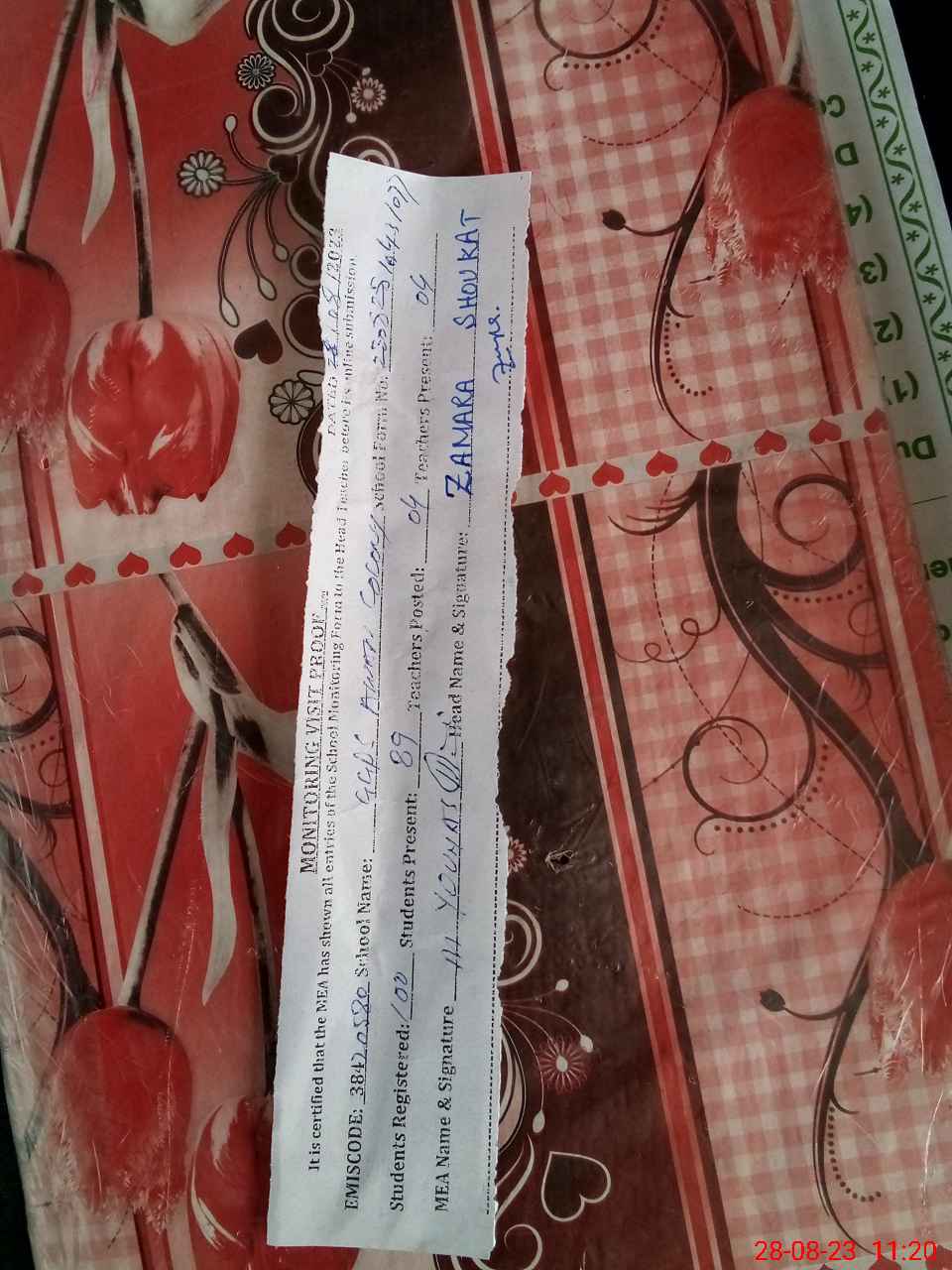| Certified that this School was Inspected by the Undersigned MEA/DMO Today and the Information Stated Above is as Per Record. | |||||