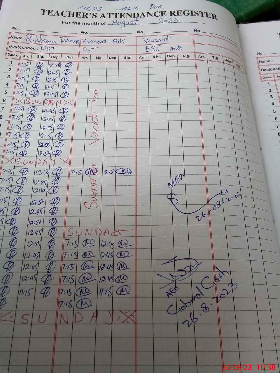 | Name: RU**** TA**** Designation: (School Headmaster's/Headmistress's) ESE(ARTS) Phone/Cell Number: 03**** |