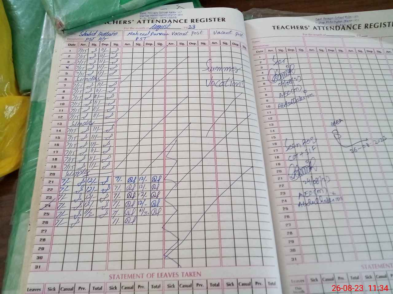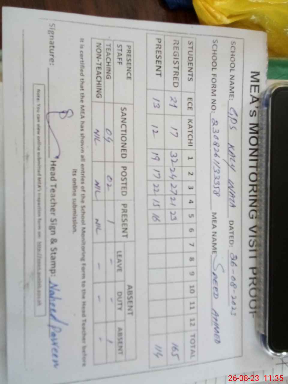 | Attendance Register | Head Teacher | MEA with School | Visit Proof |