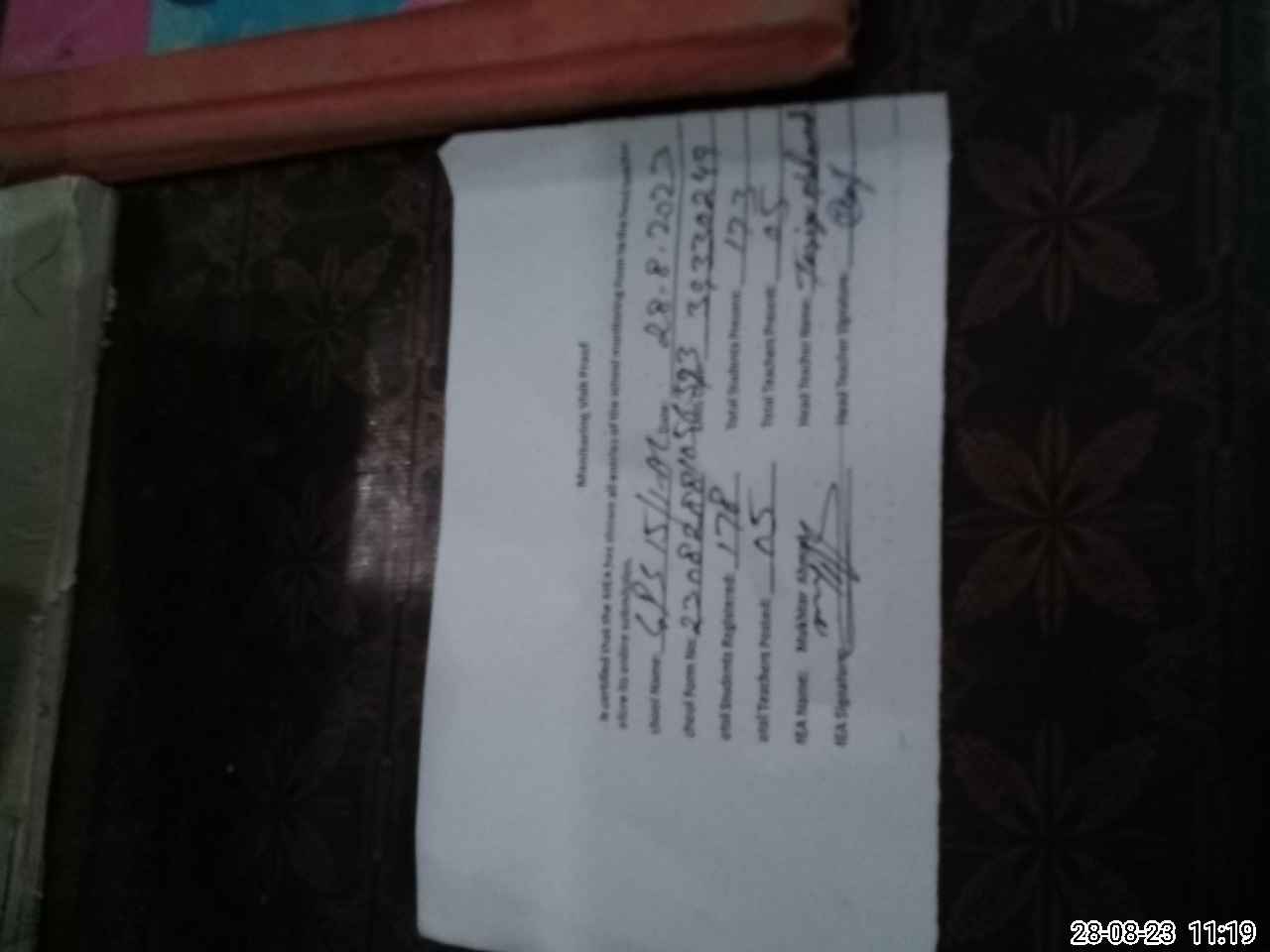 | Attendance Register | Head Teacher | MEA with School | Visit Proof |