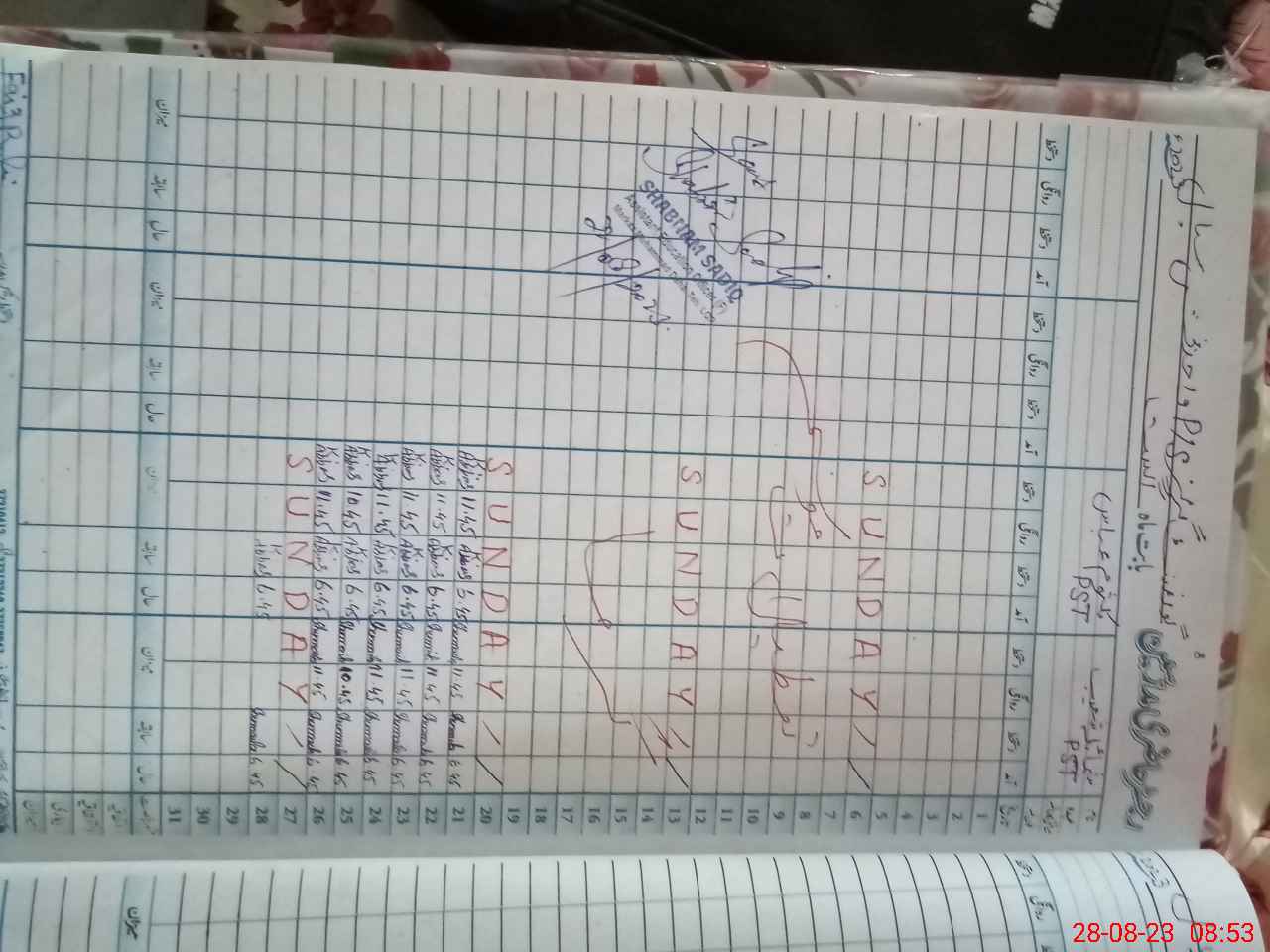 | CNIC | Full Name | Designation | R/C | Absence During Last Calender Month |