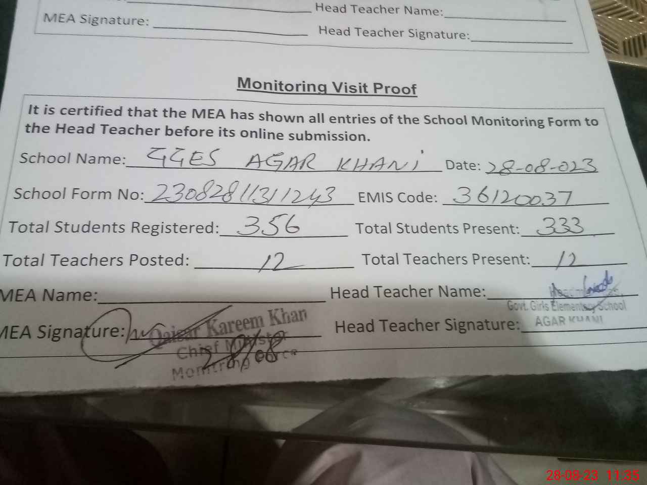 | EMIS Code: 36120037 | Name of School: GGES AGAR KHANI BASTI MAHRAM SHUJABAD | |||