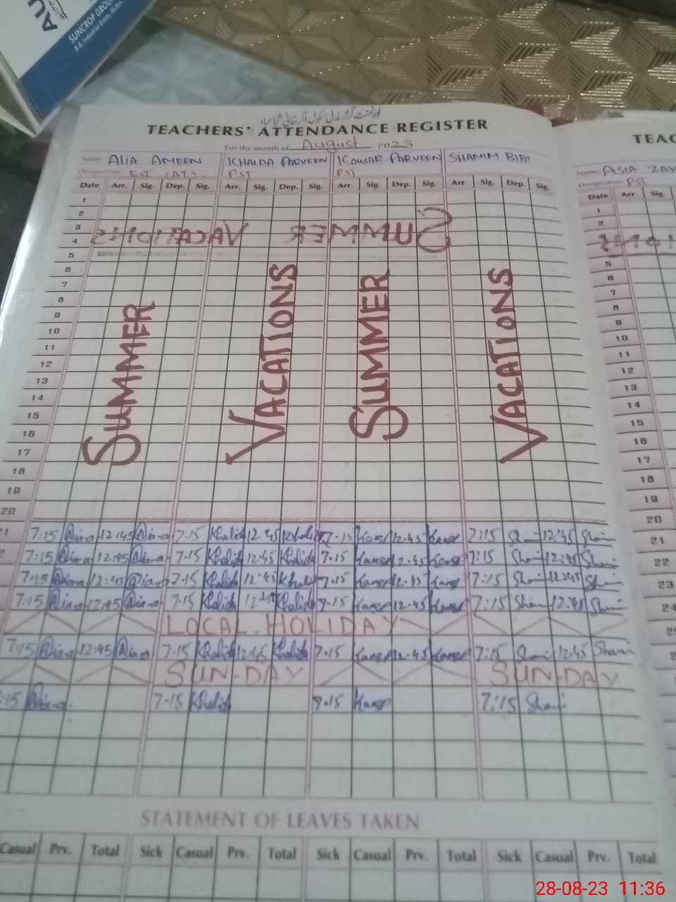 | Leave | Duty | Absent | Maternity | Medical | Ex- Pak |