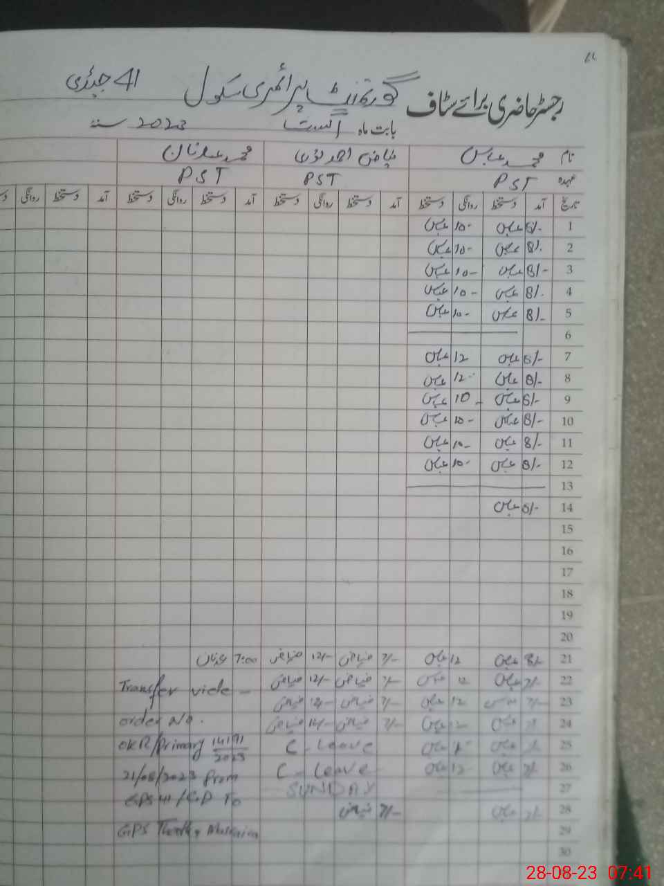 | Name: Gh**** Qa**** Designation: (School Headmaster's/Headmistress's) PST Phone/Cell Number: 03**** |