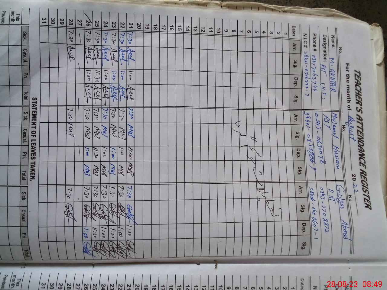 | Name: GU**** AH**** Designation: (School Headmaster's/Headmistress's) PST Phone/Cell Number: 03**** |