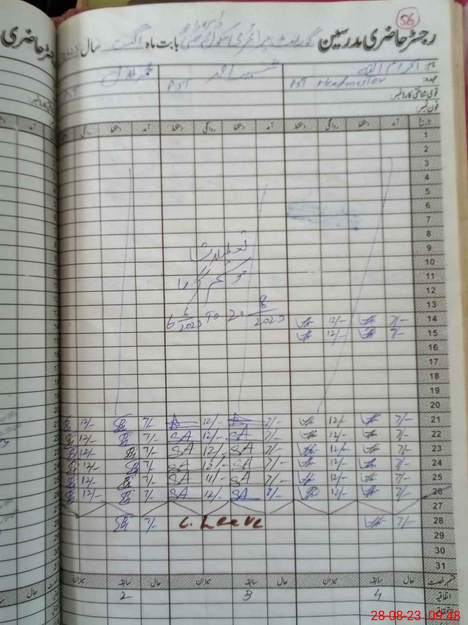 | Name: IK**** UL**** Designation: (School Headmaster's/Headmistress's) PST Phone/Cell Number: 03**** |