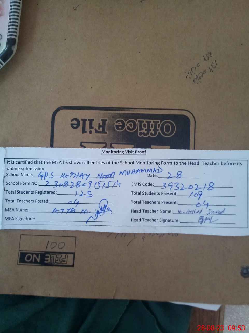 | EMIS Code: 39320218 | Name of School: GPS KOTHAY NOOR MUHAMMAD | |||