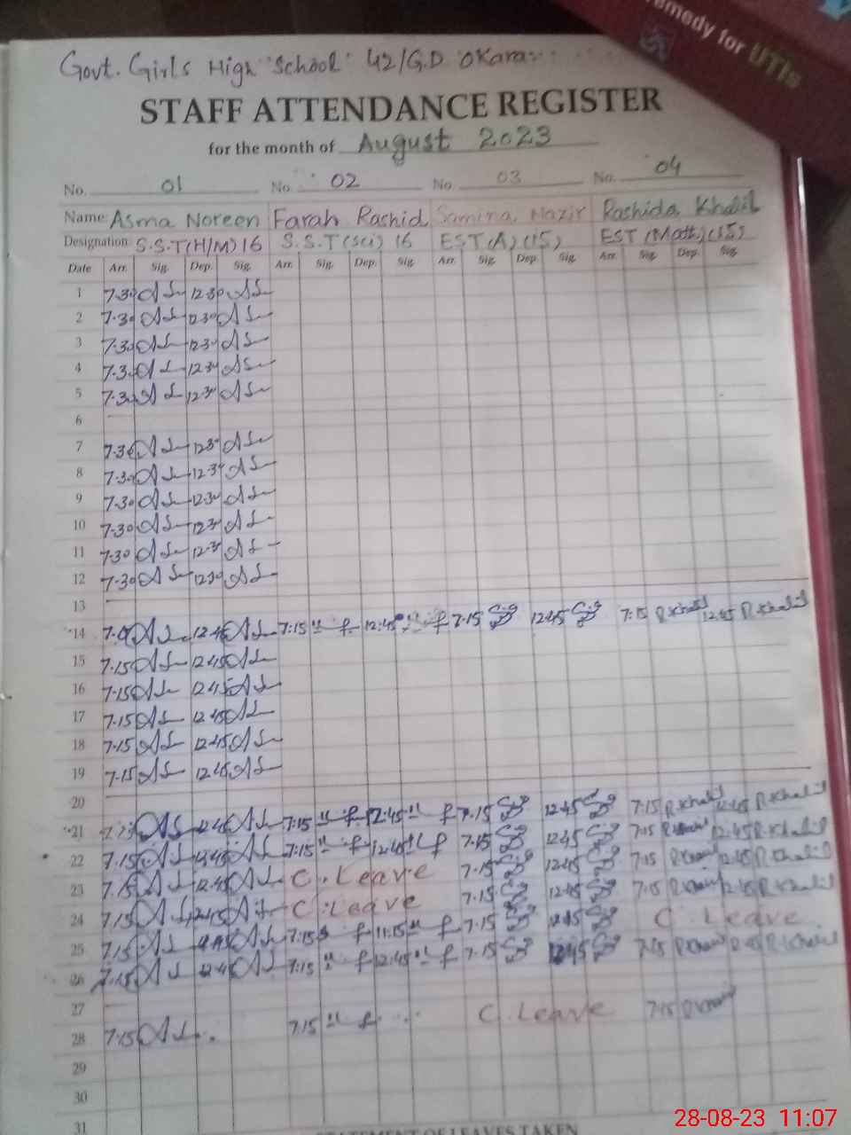 | Leave | Duty | Absent | Maternity | Medical | Ex- Pak |