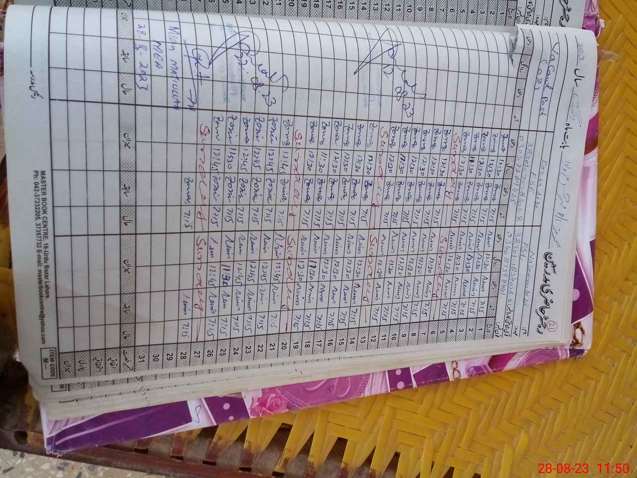 | CNIC | Full Name | Designation | R/C | Absence During Last Calender Month |