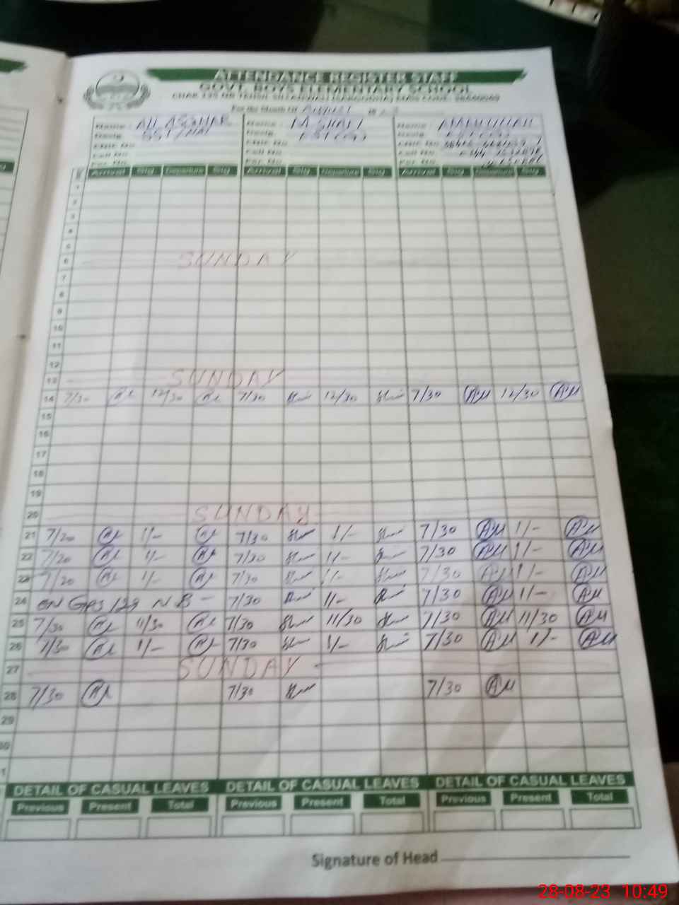 | Name: AL**** AS**** Designation: (School Headmaster's/Headmistress's) SST (ARTS) Phone/Cell Number: 03**** |
