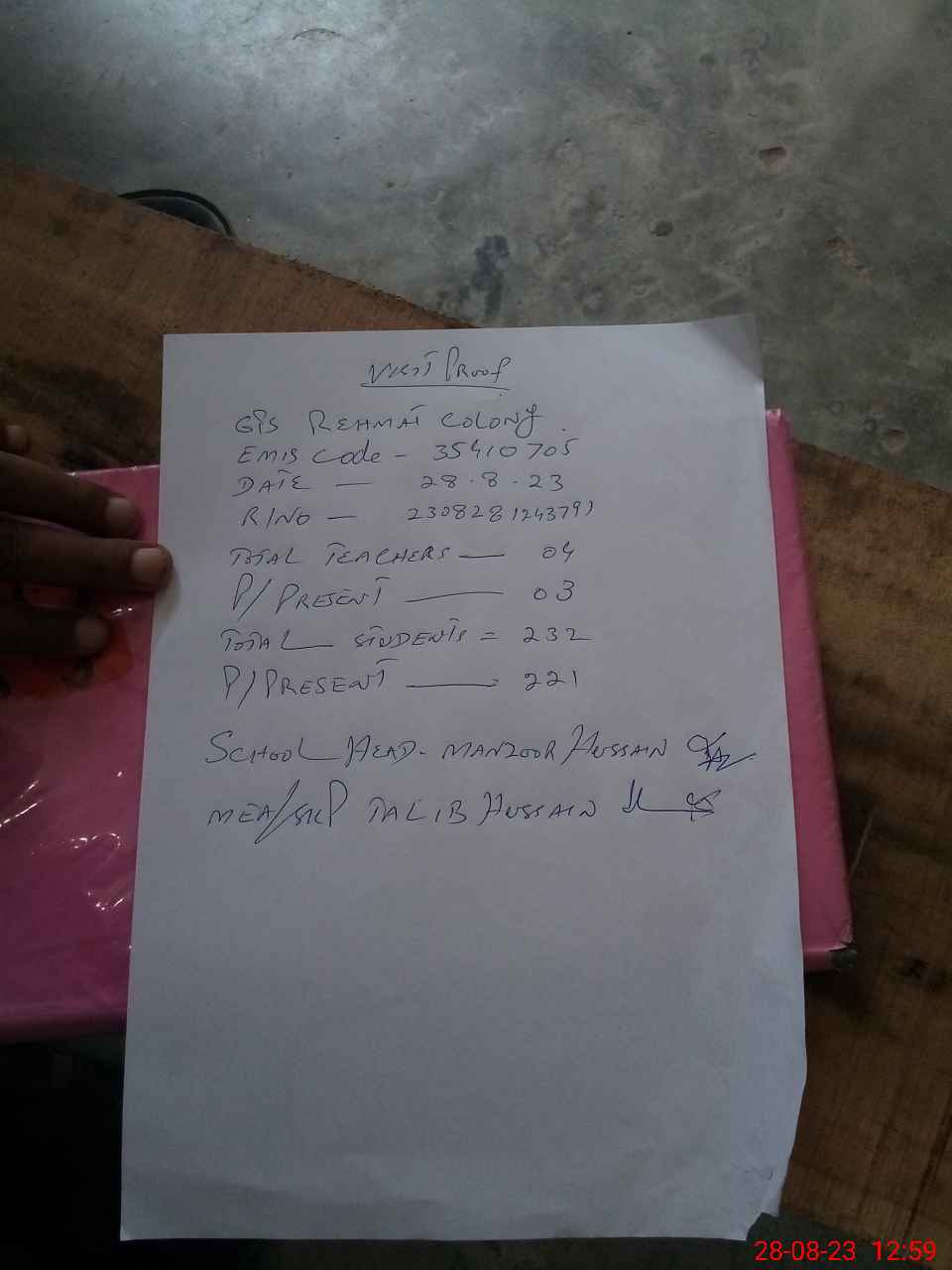 | EMIS Code: 35410705 | Name of School: GPS REHMAT COLONY FEROZWALA | |||