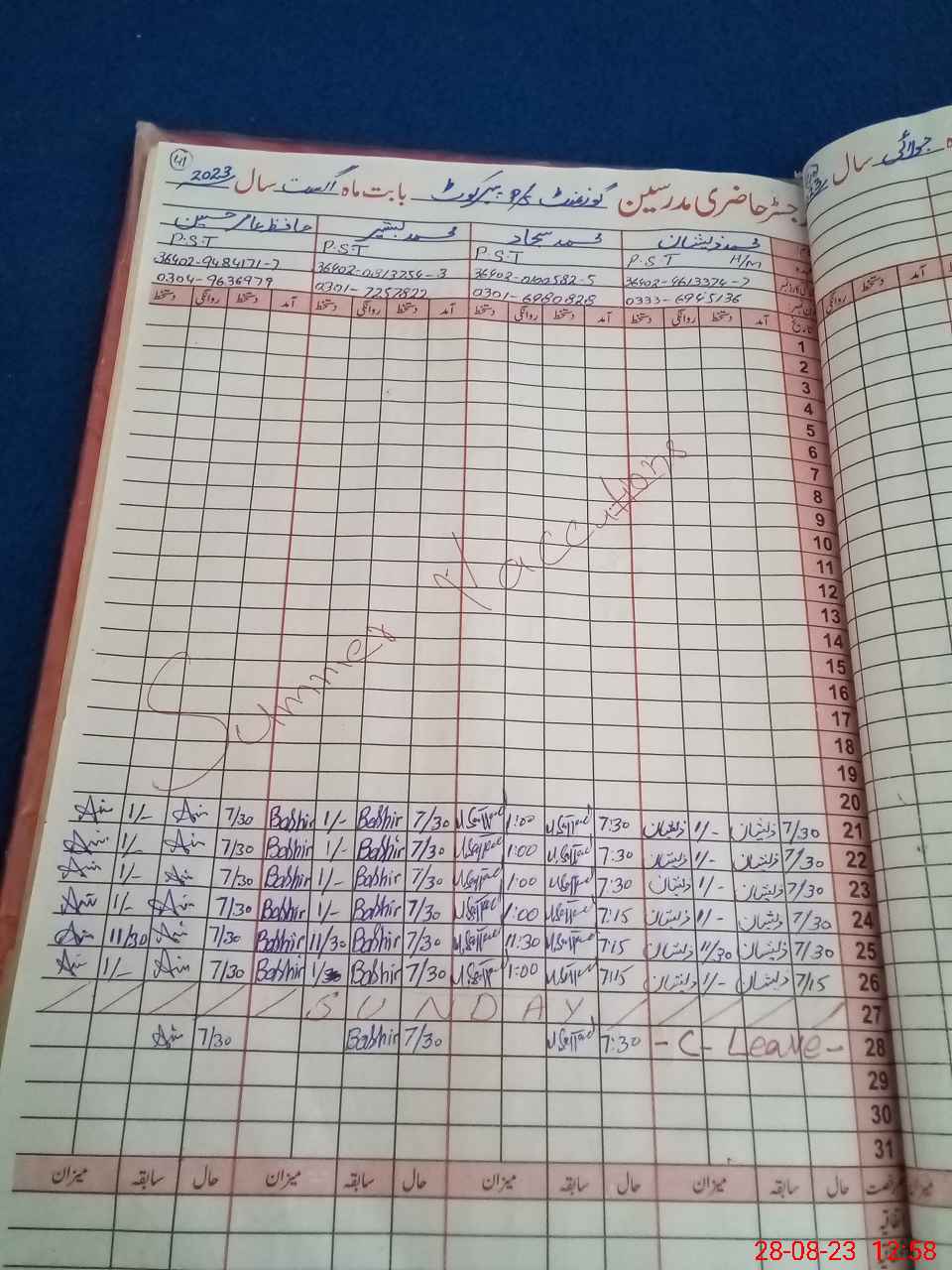 | Name: Mu**** Ze**** Designation: (School Headmaster's/Headmistress's) PST Phone/Cell Number: 03**** |