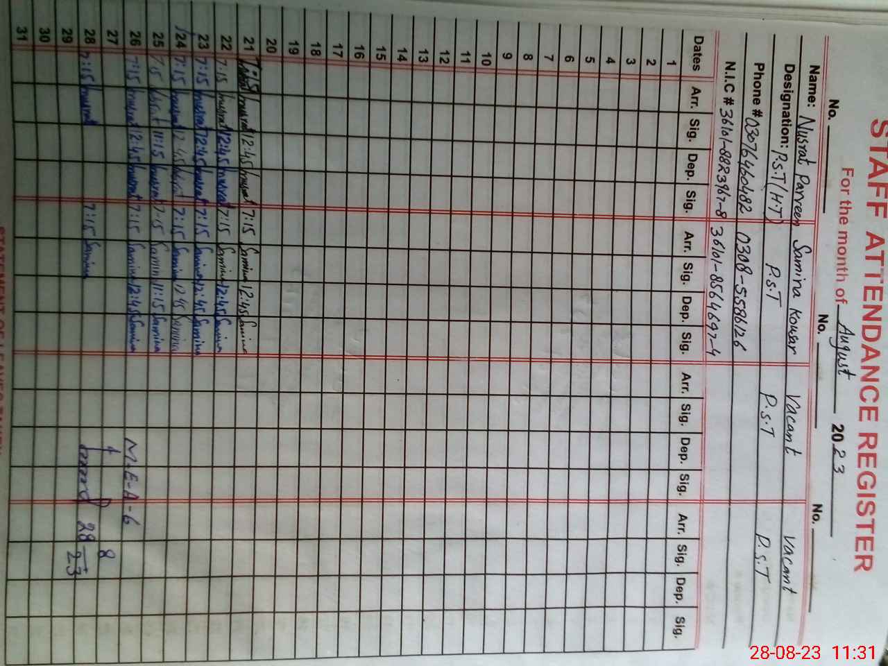 | Name: NU**** PA**** Designation: (School Headmaster's/Headmistress's) PST Phone/Cell Number: 03**** |