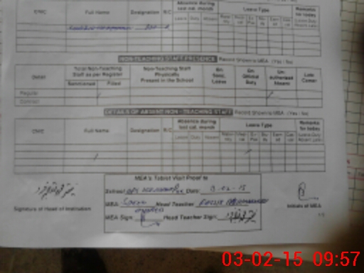 | Attendance Register | Head Teacher | MEA with School | Visit Proof |