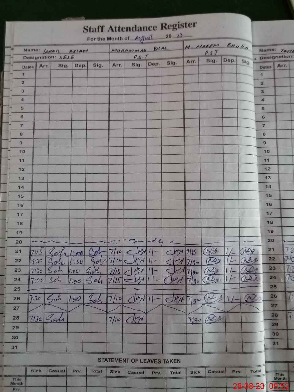 | 36**** | Au**** | PST | Temporary | 0 | 0 | 0 | 0 | 0 | 0 | 0 | 0 | 0 | Casual |