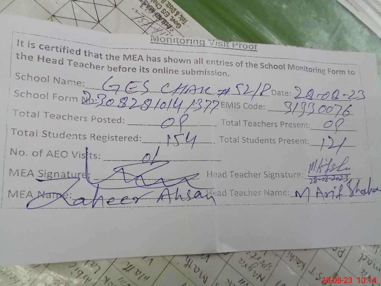 | EMIS Code: 31330076 | Name of School: GES CHAK 52/P | |||