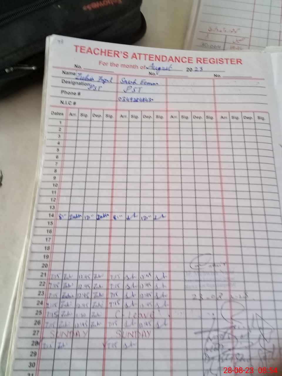 | Name: ZO**** FA**** Designation: (School Headmaster's/Headmistress's) PST Phone/Cell Number: 03**** |