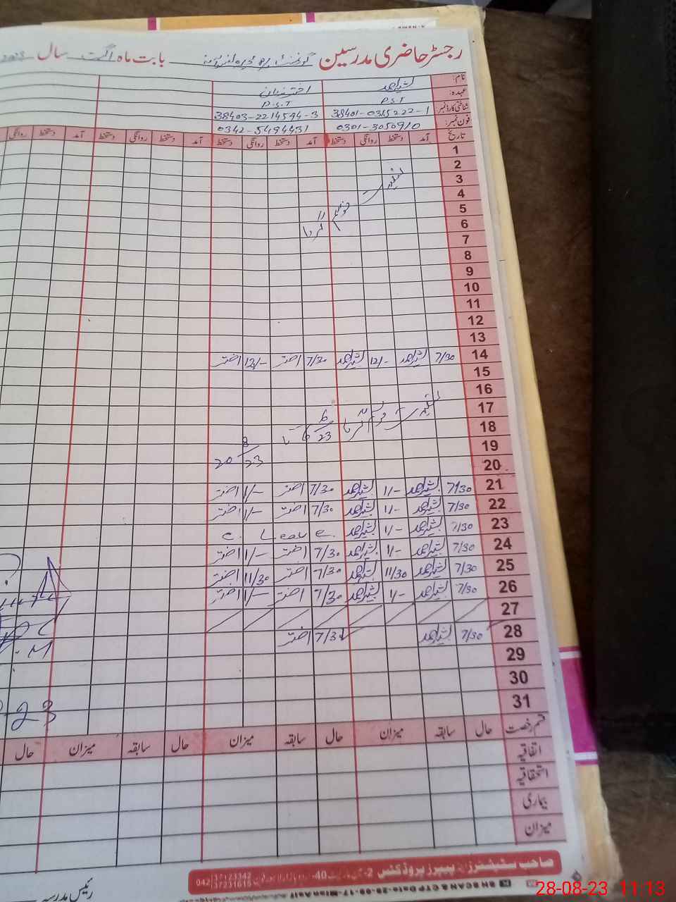 | Name: BA**** AH**** Designation: (School Headmaster's/Headmistress's) PST Phone/Cell Number: 03**** |