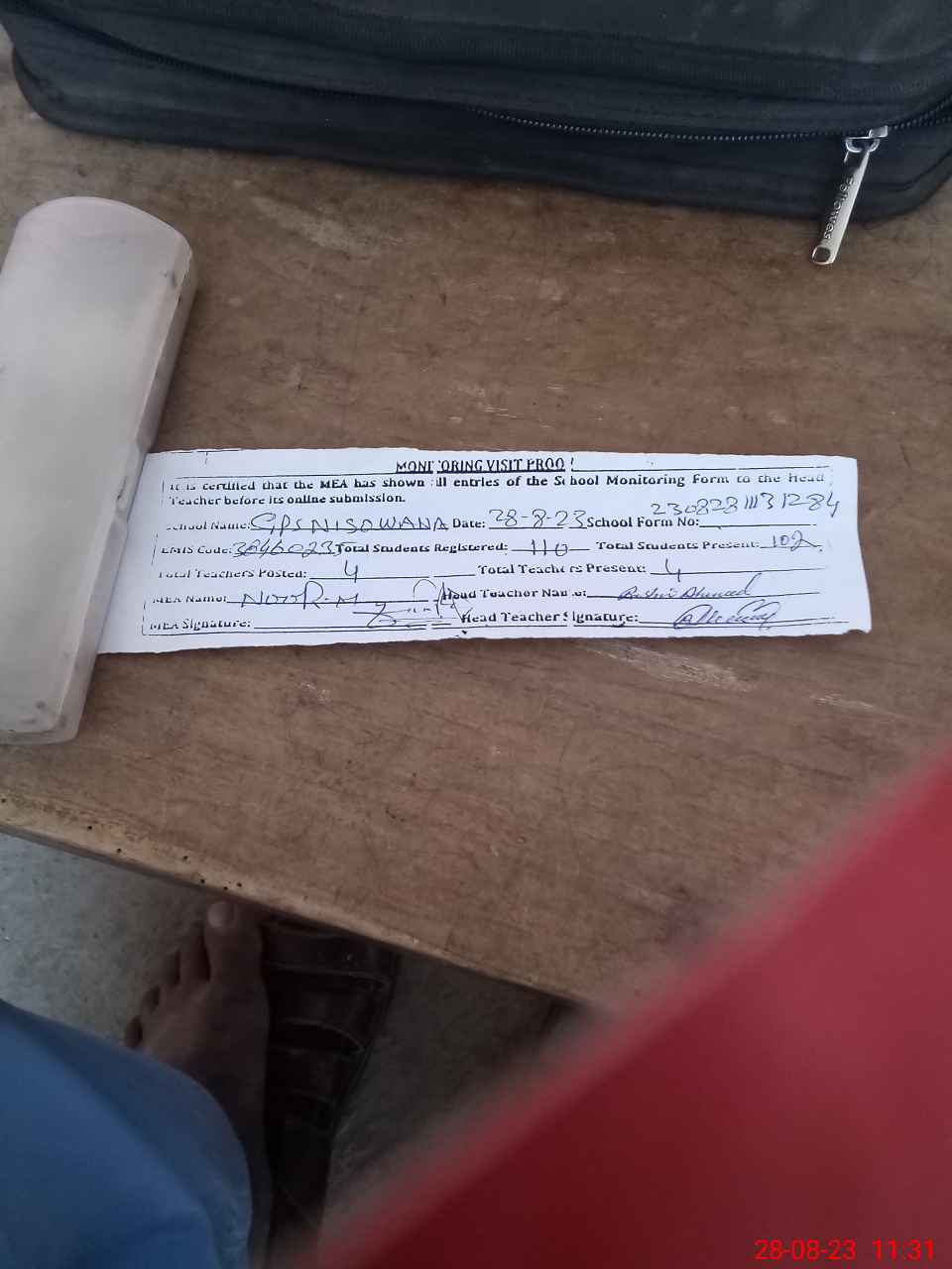| Attendance Register | Head Teacher | MEA with School | Visit Proof |