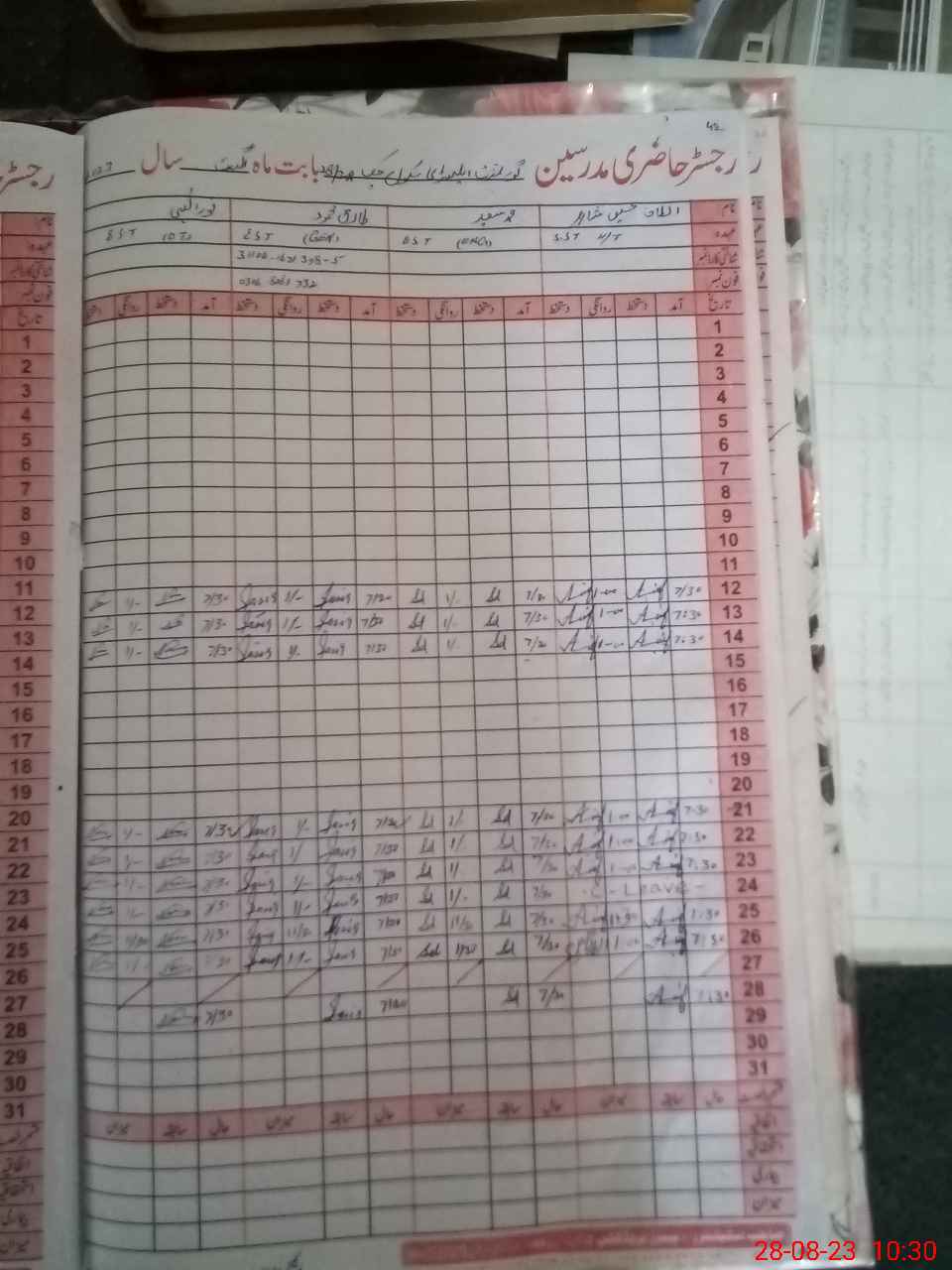 | CNIC | Full Name | Designation | R/C | Absence During Last Calender Month |