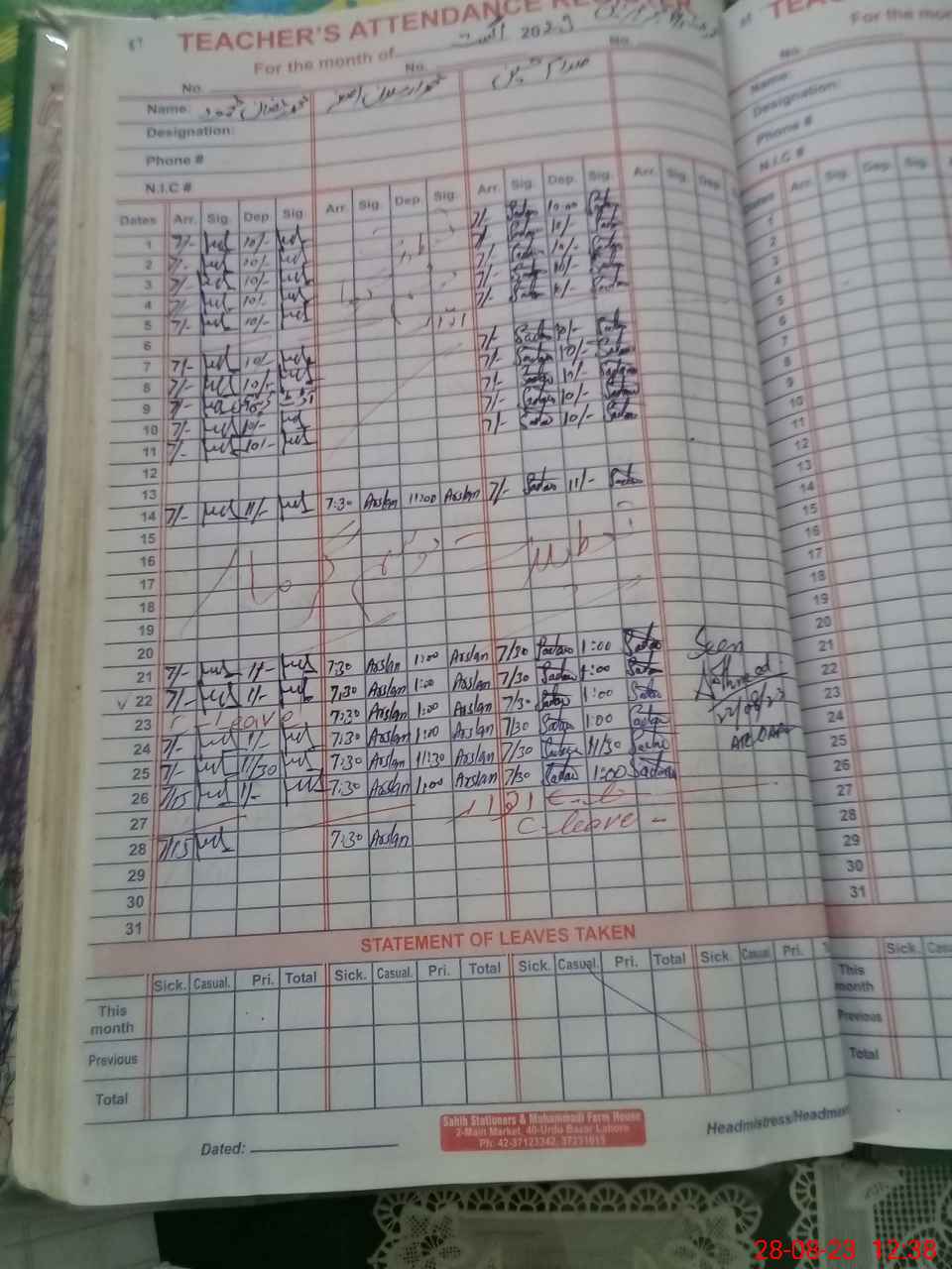 | Name: MRa**** Designation: (School Headmaster's/Headmistress's) EST Phone/Cell Number: 03**** |