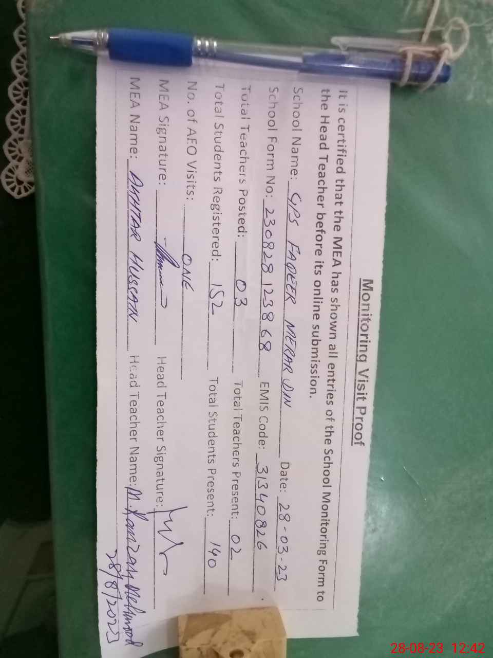 | EMIS Code: 31340826 | Name of School: GPS FAQEER MEHAR DIN | |||
