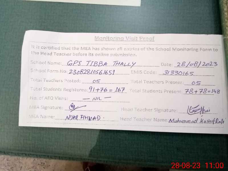 | EMIS Code: 31330169 | Name of School: GPS TIBBA THALLY | |||