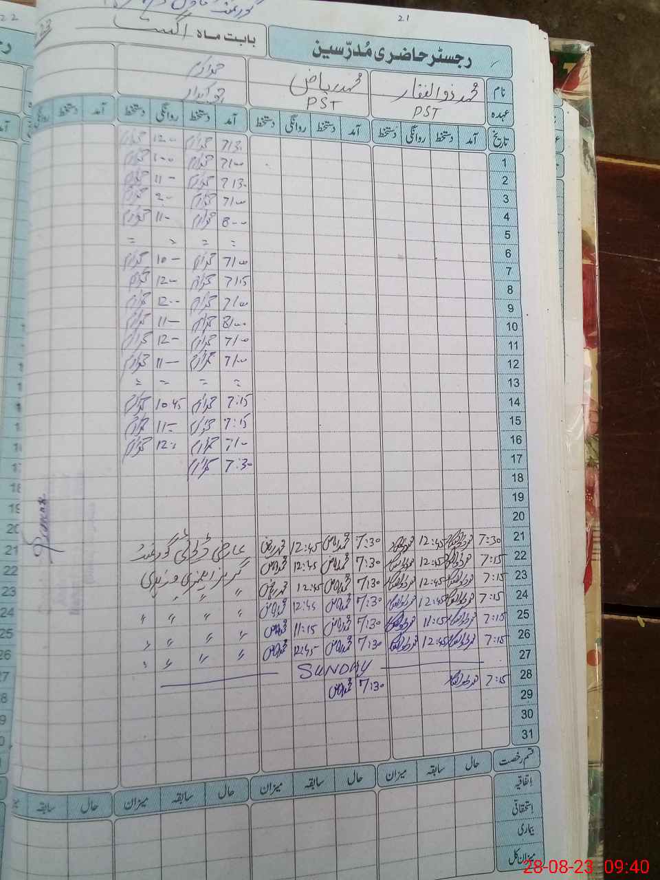 | Name: Mu**** Zu**** Designation: (School Headmaster's/Headmistress's) PST Phone/Cell Number: 03**** |