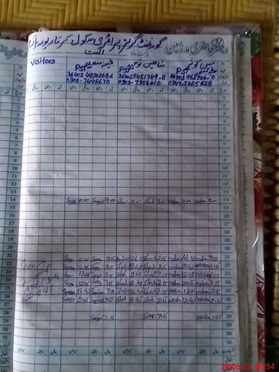 | Remarks (Use Separate Page if Required): Samina Saeed PST actually posted at Chak No 16 SP at adtional duty at GGPS Kartar pur from 02 May 2023 Where as all adtional duty are cancelled by CEO Pakpattan in Aug 2023 | |||||