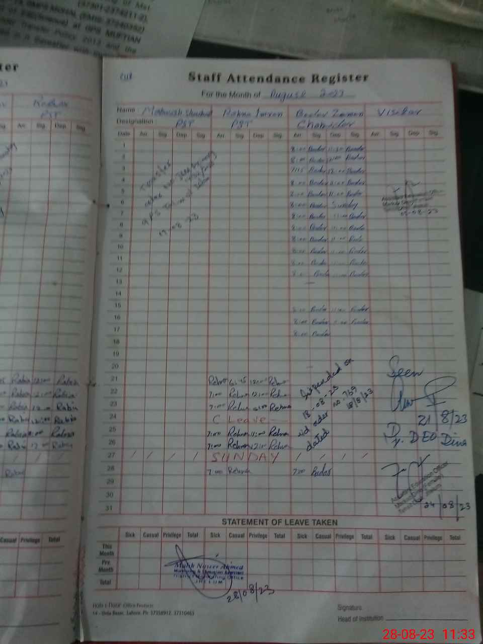 | Name: Re**** Im**** Designation: (School Headmaster's/Headmistress's) HEADMISTRESS Phone/Cell Number: 03**** |