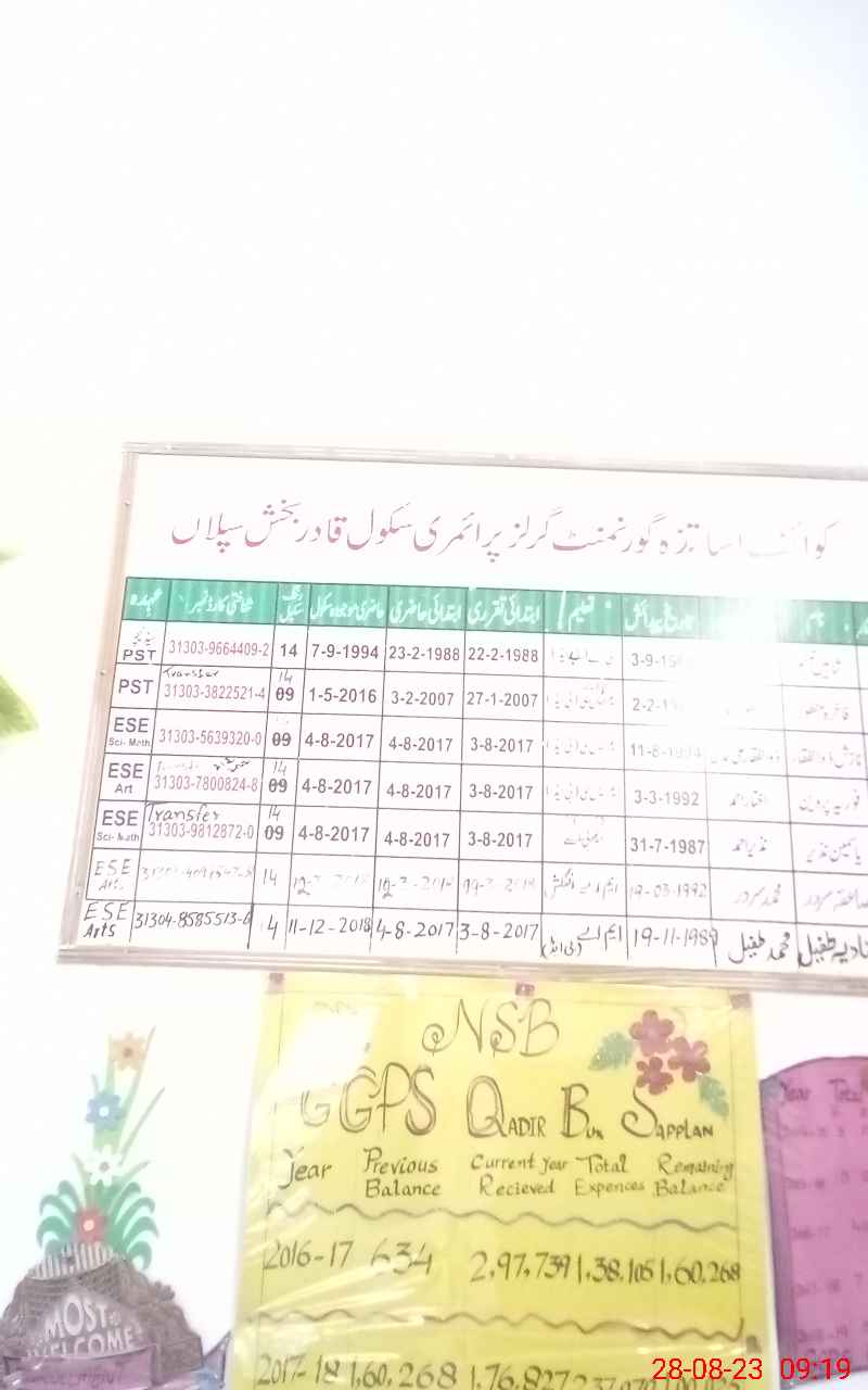 | EMIS Code: 31330767 | Name of School: GGPS QADAR BUX SUPPLAN | |||