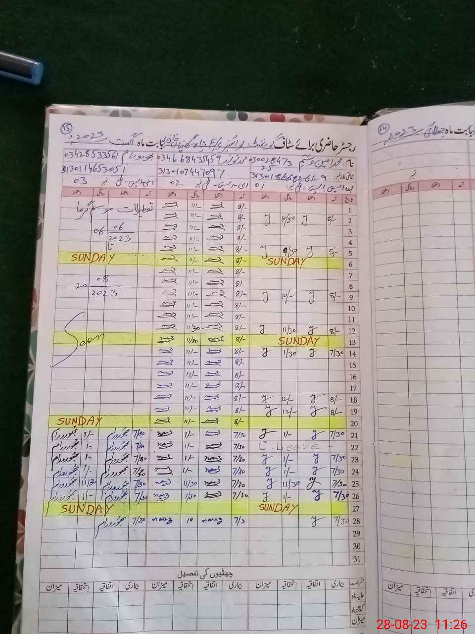 | CNIC | Full Name | Designation | R/C | Absence During Last Calender Month |