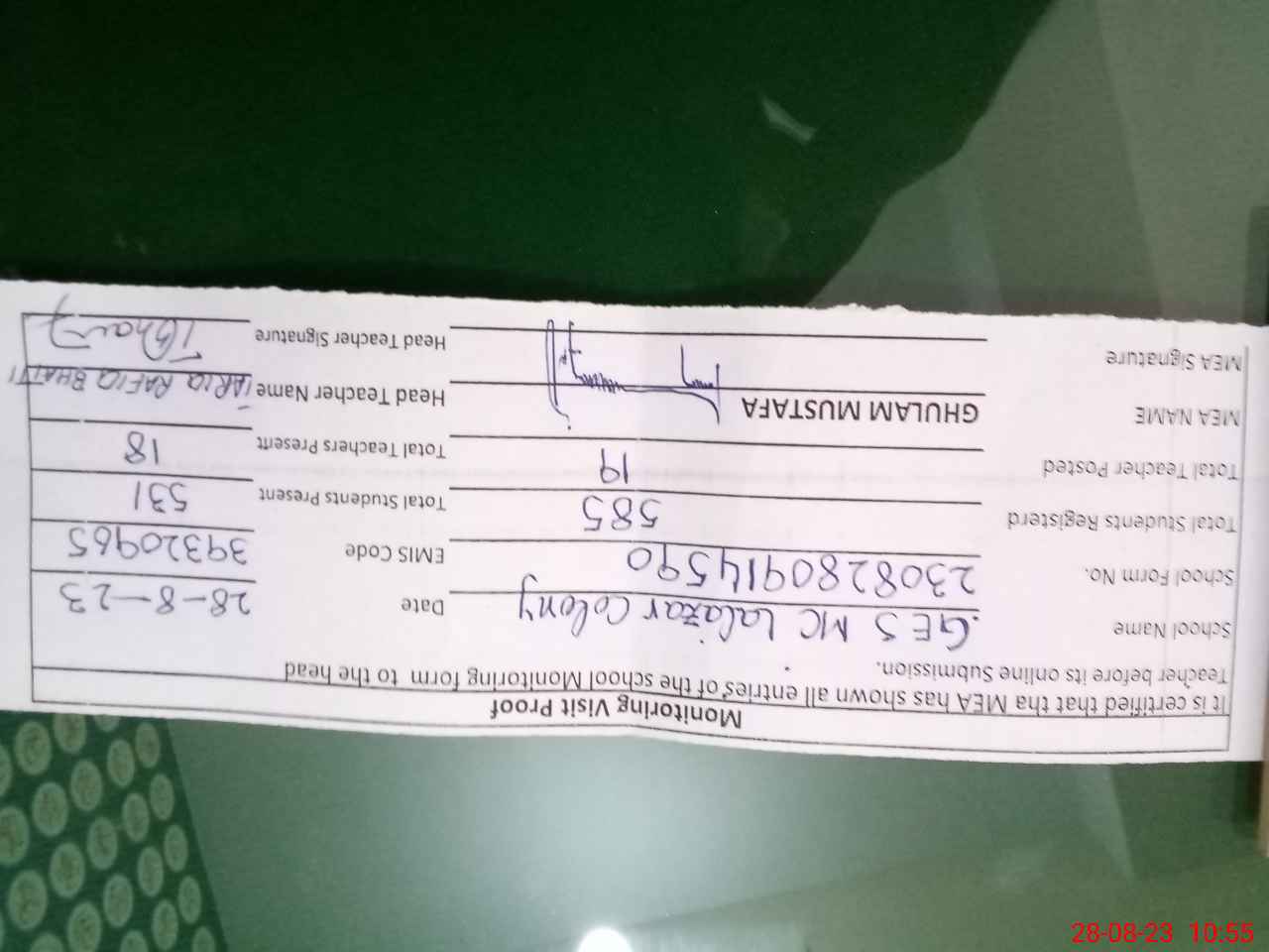 | EMIS Code: 39320965 | Name of School: GES MC LALAZAR COLONY | |||