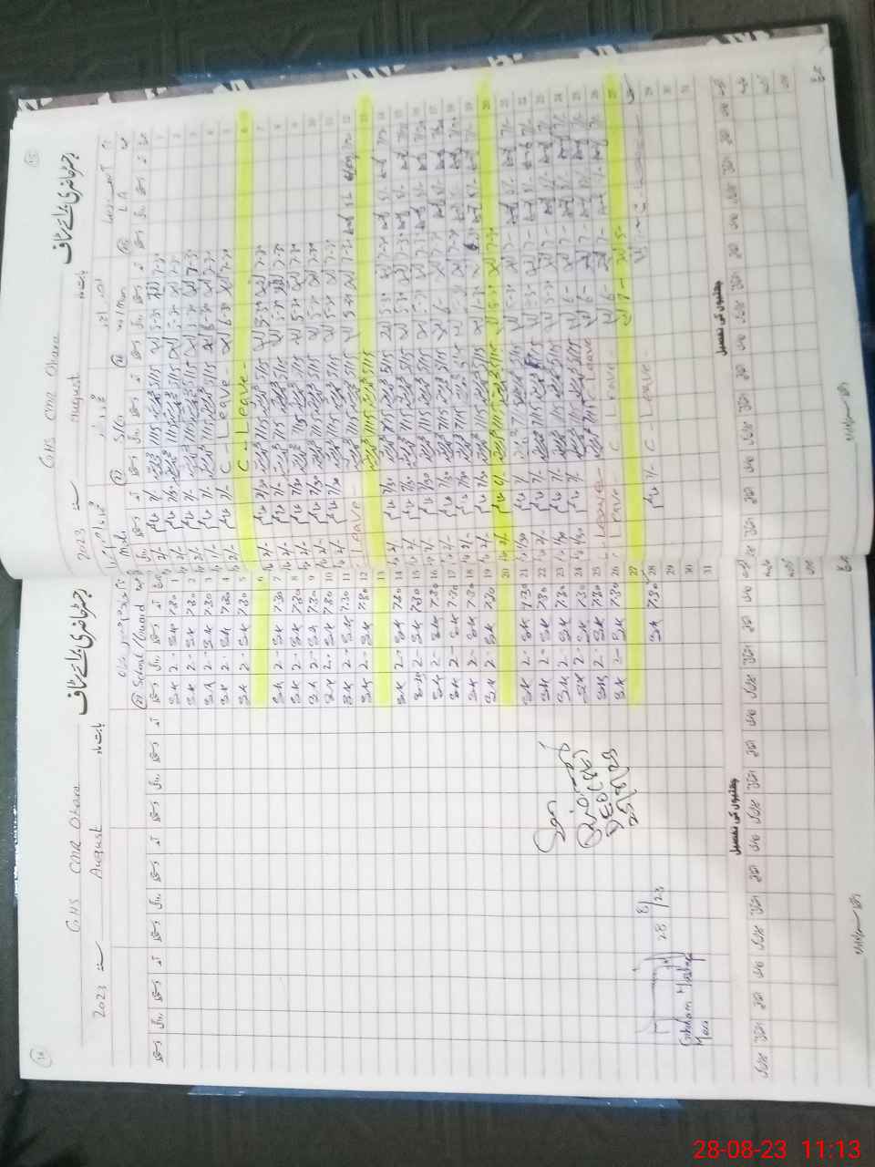 | CNIC | Full Name | Designation | R/C | Absence During Last Calender Month |