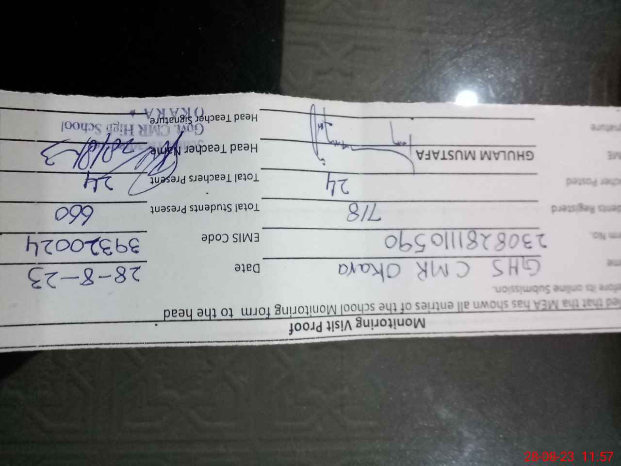 | EMIS Code: 39320024 | Name of School: GHS CMR OKARA | |||