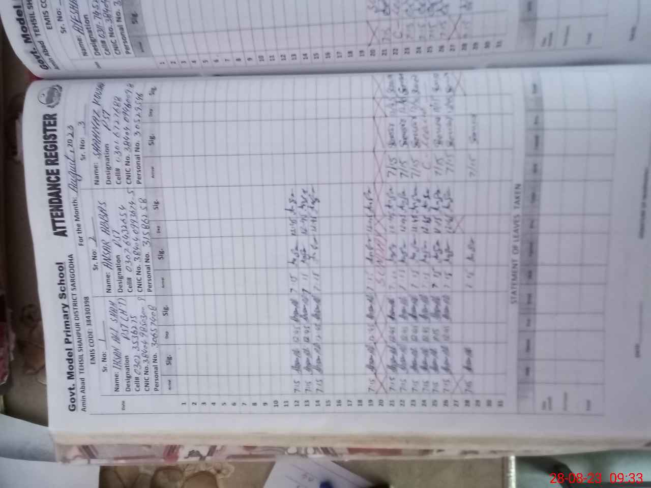| Name: IH**** AL**** SH**** Designation: (School Headmaster's/Headmistress's) PST Phone/Cell Number: 03**** |