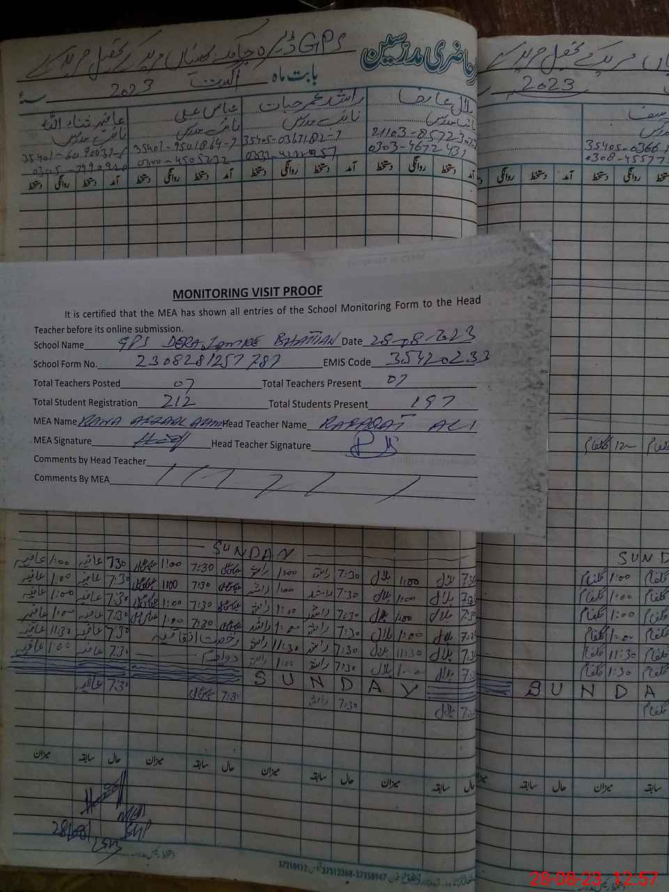 | Attendance Register | Head Teacher | MEA with School | Visit Proof |